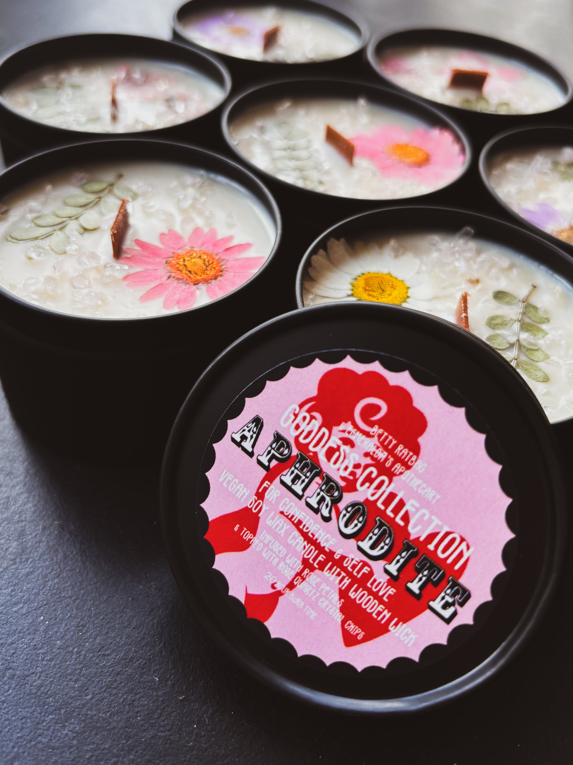 All of our Goddess candles are handmade in small batches at our brick & mortar shop in Leigh-on-sea.