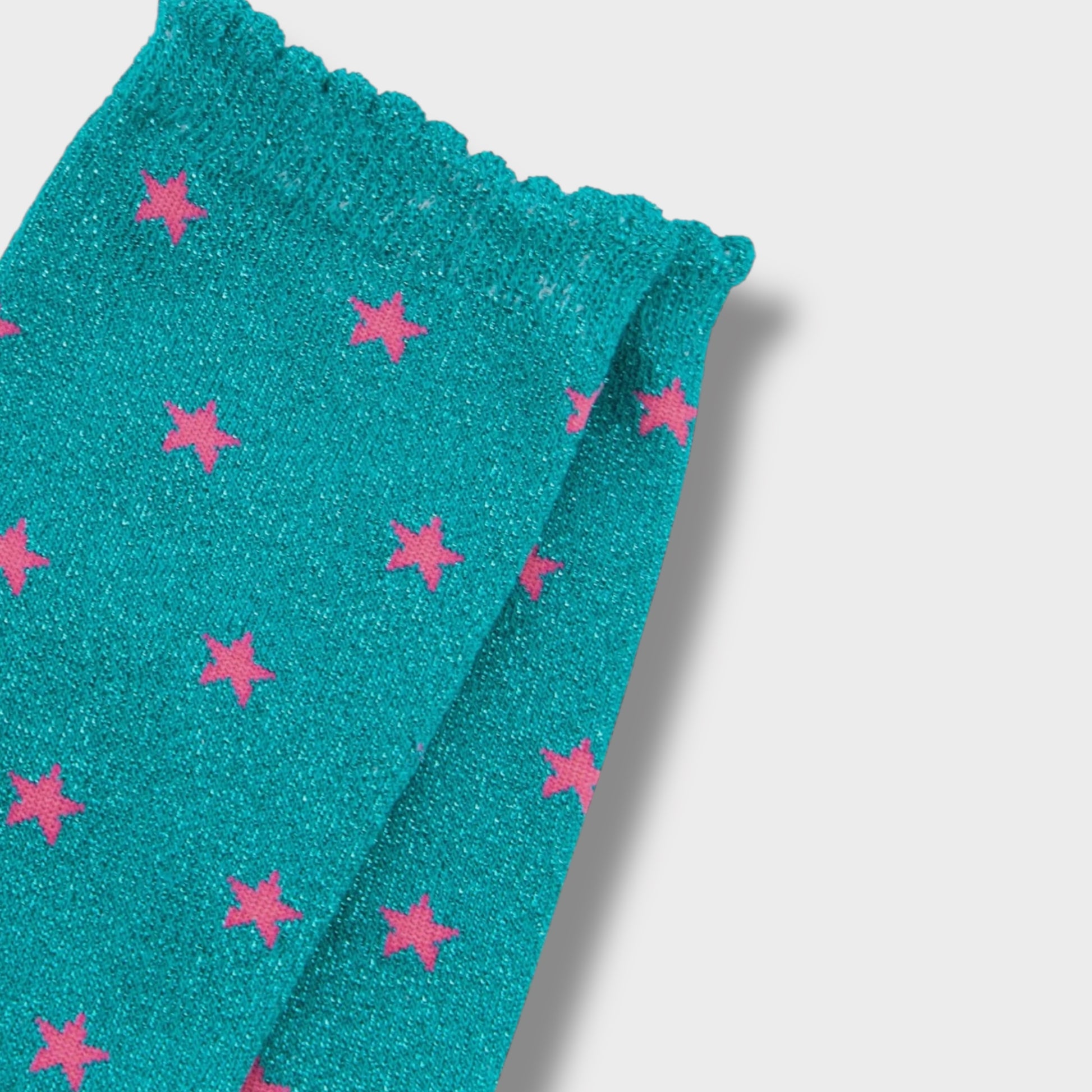 Shimmering glitter star print ankle socks woven with a soft cotton blend yarn