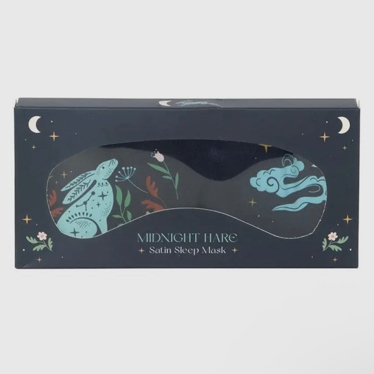 Get set for a peaceful night's sleep with this midnight hare satin sleep mask. Featuring a mystical hare underneath a starry night sky on a dark background to effectively block out light. Made from 100% soft polyester to ensure a snug and gentle fit. Hand wash only.